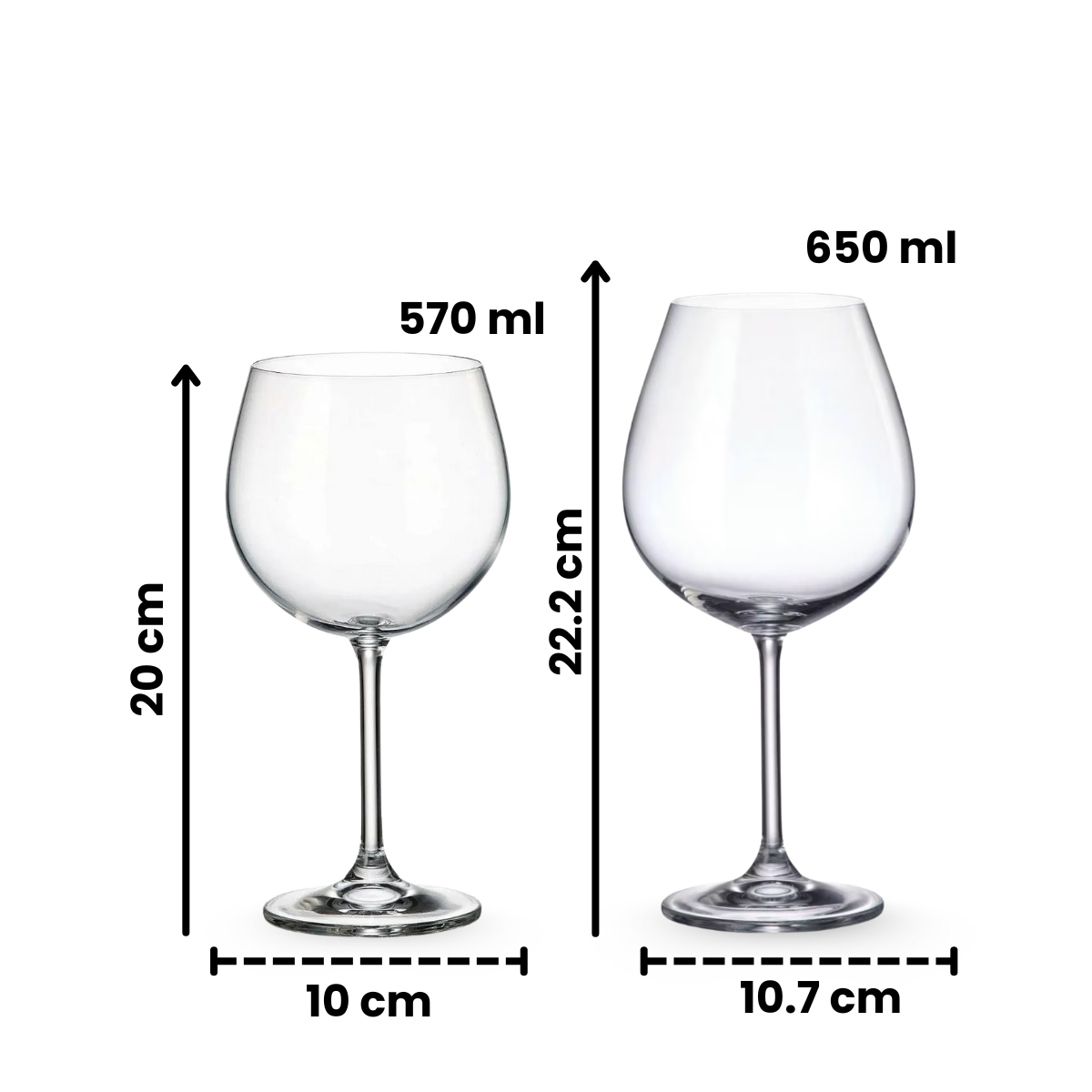 Explora nuestra variedad de tamaños, desde copas amplias para vino tinto hasta refinadas copas para champaña, para que elijas la ideal en cada momento.
