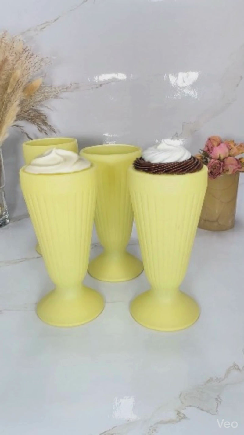 Set de 4 copas malteada Butter Yellow TOY fabricadas en vidrio de alta calidad con acabado amarillo suave. Su diseño retro simula plástico, pero ofrece la resistencia y brillo del vidrio. Ideales para malteadas, postres y bebidas frías en restaurantes, reuniones con amigos o uso diario. Estilo vintage, moderno y decorativo.