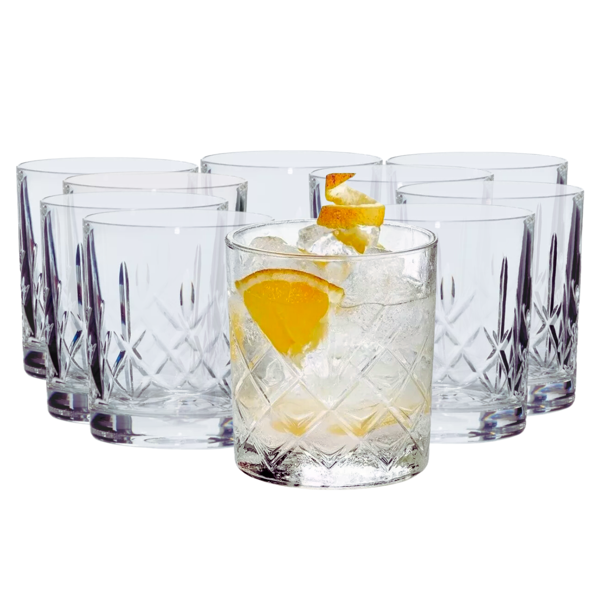 Descubre el lujo de tus bebidas favoritas con el juego de 12 vasos de vidrio tipo cortado Eternal. Perfecto para cocteles, cenas, reuniones sociales y más, su diseño de cristal impecable y resistente añade un toque exclusivo a tu experiencia. Calidad premium para tus mejores momentos. Este juego de vasos está elaborado con materiales de alta durabilidad, garantizando su resistencia ante raspaduras y su fácil limpieza incluso en lavavajillas. Ideal para disfrutar de un whiskey después de un día largo.