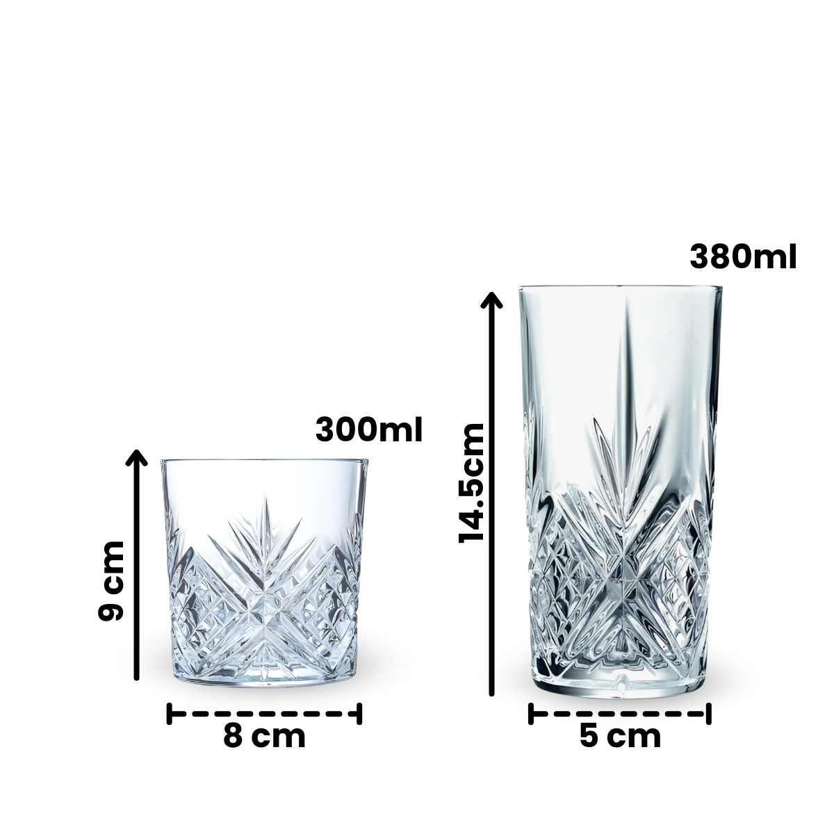 Disponibles en diferentes tamaños y formas, nuestros vasos son ideales para todo tipo de bebidas, incluyendo agua, vino, whisky y cócteles.