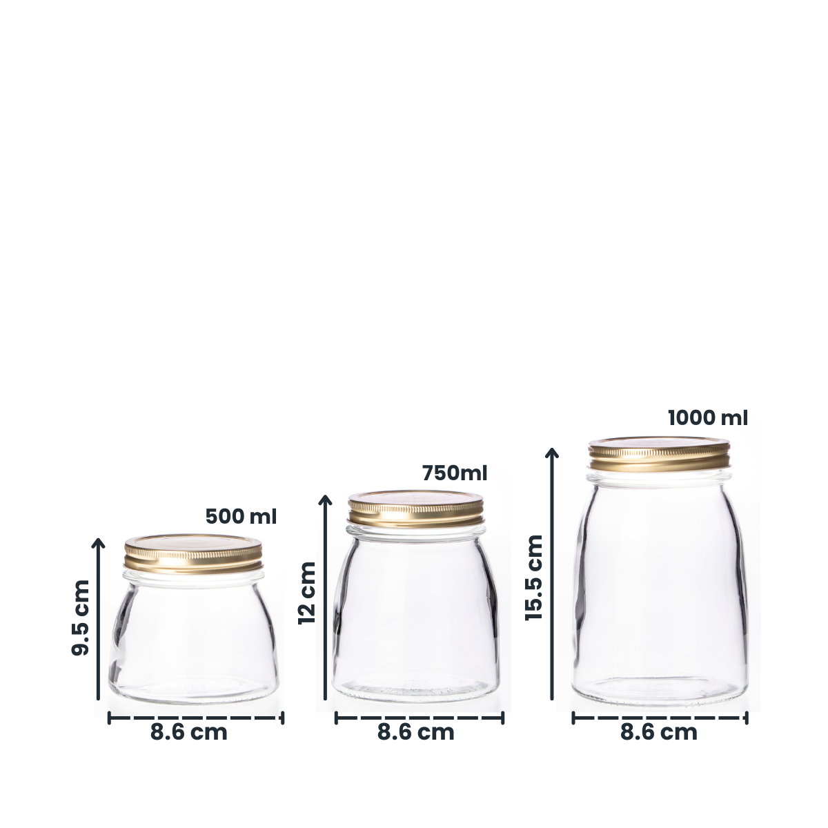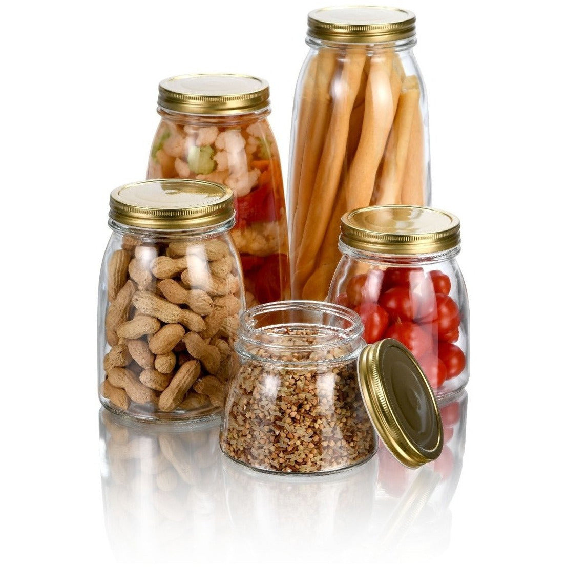 Flexy - Set De 10 Contenedores De Vidrio Con Tapa Dorada.