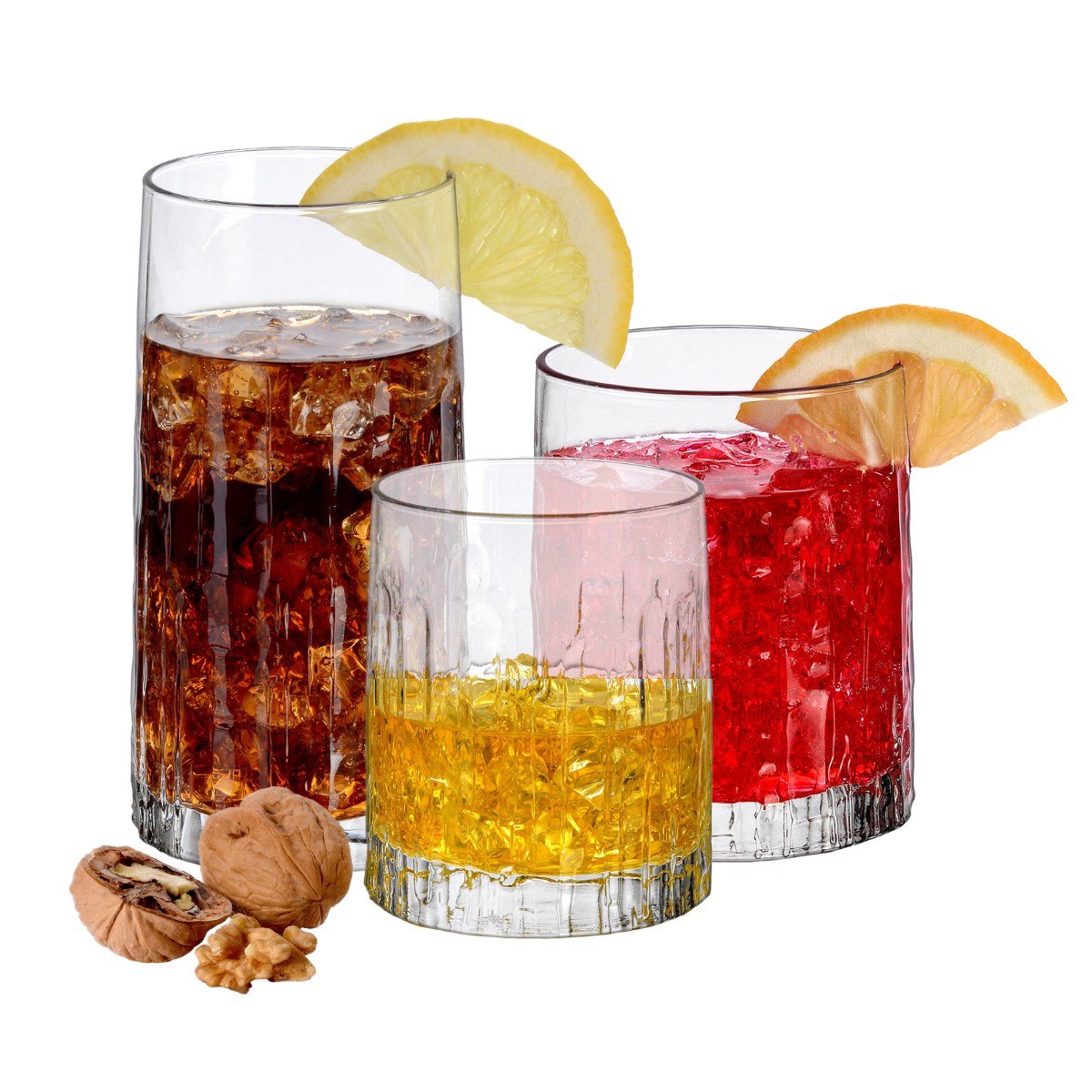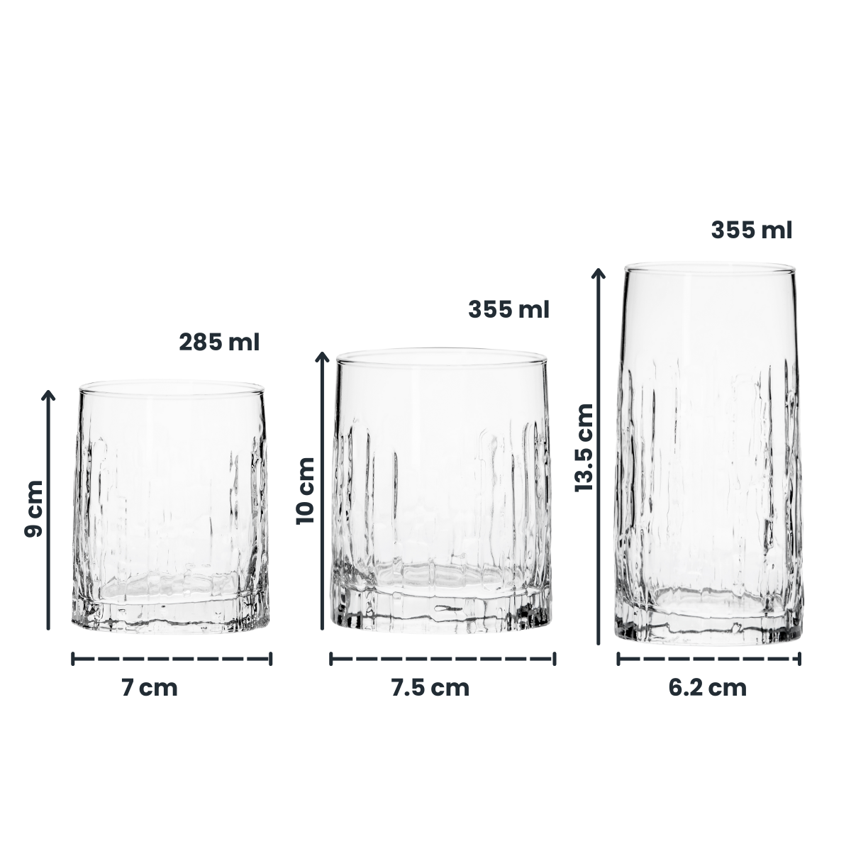 Eleva la experiencia de tus bebidas con este set de 6 vasos vintage en diferentes tamaños. Su elegante diseño en vidrio con textura que imita la madera aporta un toque sofisticado ideal para cualquier evento, desde cenas en casa hasta reuniones y restaurantes. Da un plus de estilo y distinción a cada sorbo con estos vasos únicos.