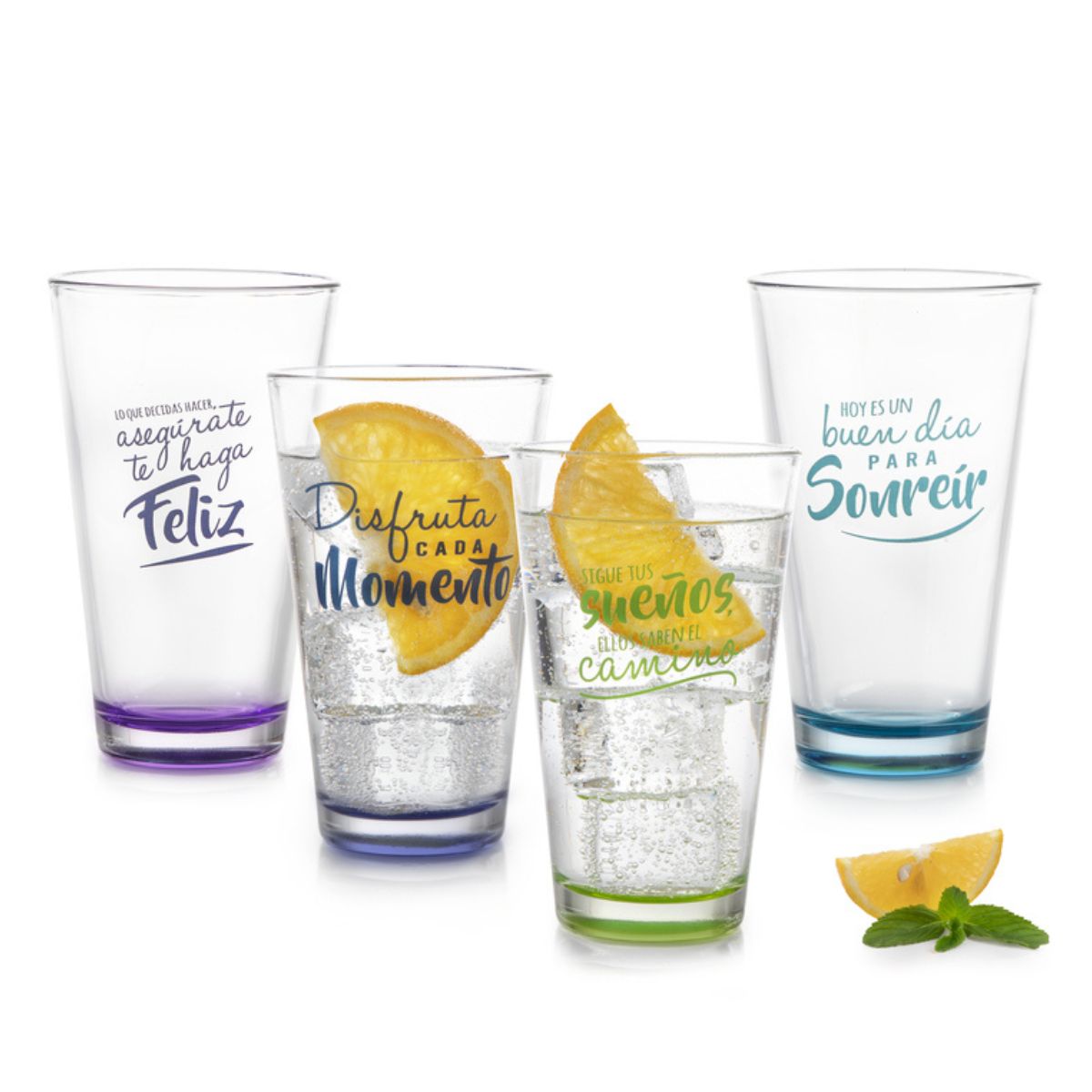 Quotes- Juego De 4 Vasos 414 ml De Vidrio Decorado