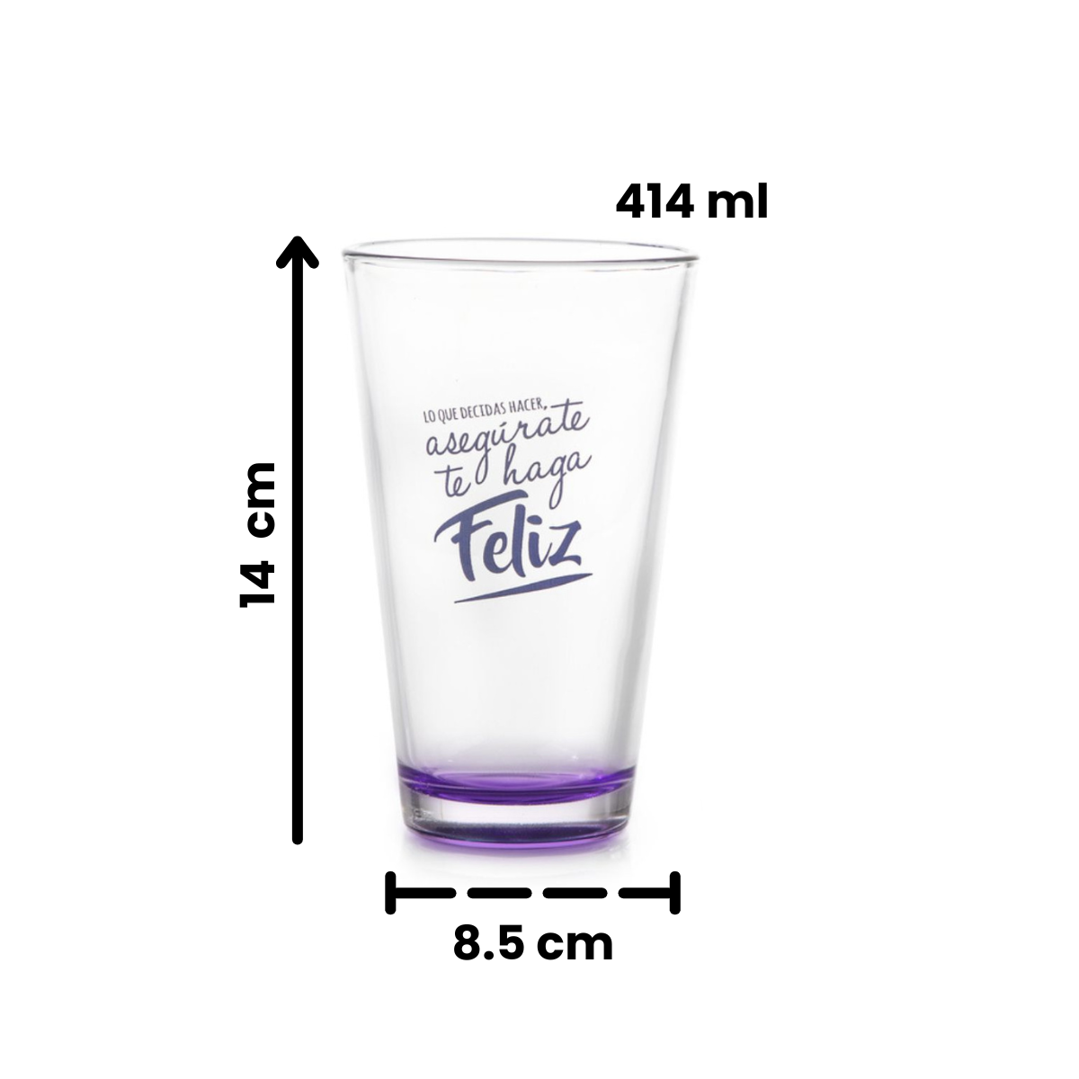 Estos elegantes vasos de vidrio decorado, con capacidad de 414 ml, son la elección perfecta para sus momentos especiales. Su diseño de boca amplia facilita la limpieza y son aptos para lavavajillas. Ideales para servir cocteles, aguas frescas o jugos durante reuniones familiares, eventos al aire libre o cenas sofisticadas. Su estética colorida aporta un toque de distinción a sus bebidas, especialmente en esas cálidas tardes de verano.