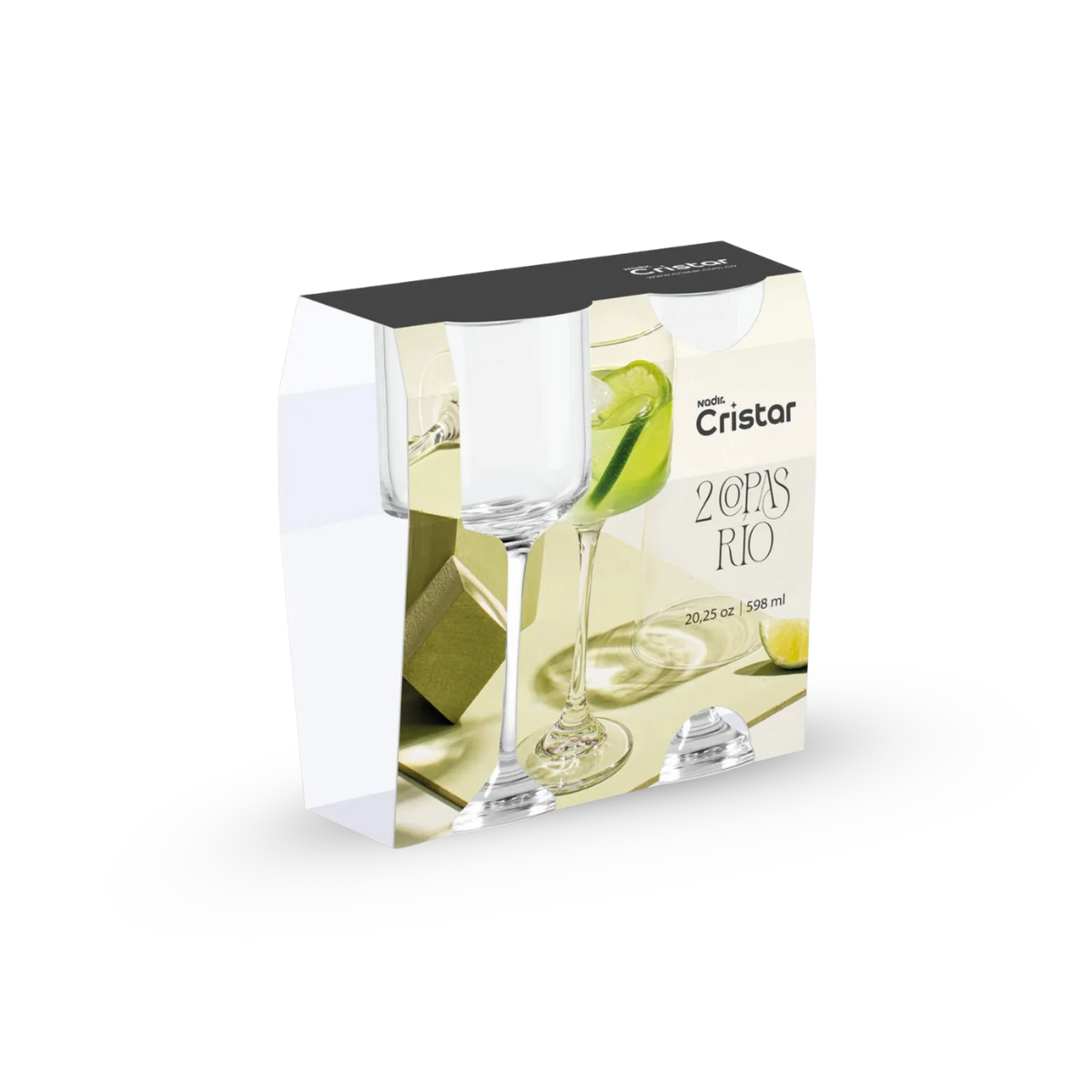 Juego de 2 copas Río para cóctel fabricadas en vidrio transparente de alta calidad. Su diseño estilizado y capacidad de 598 ml las hace ideales para preparar y servir cócteles con hielo y decoraciones. Pensadas para celebraciones íntimas, cenas elegantes o para elevar la experiencia de coctelería en casa.