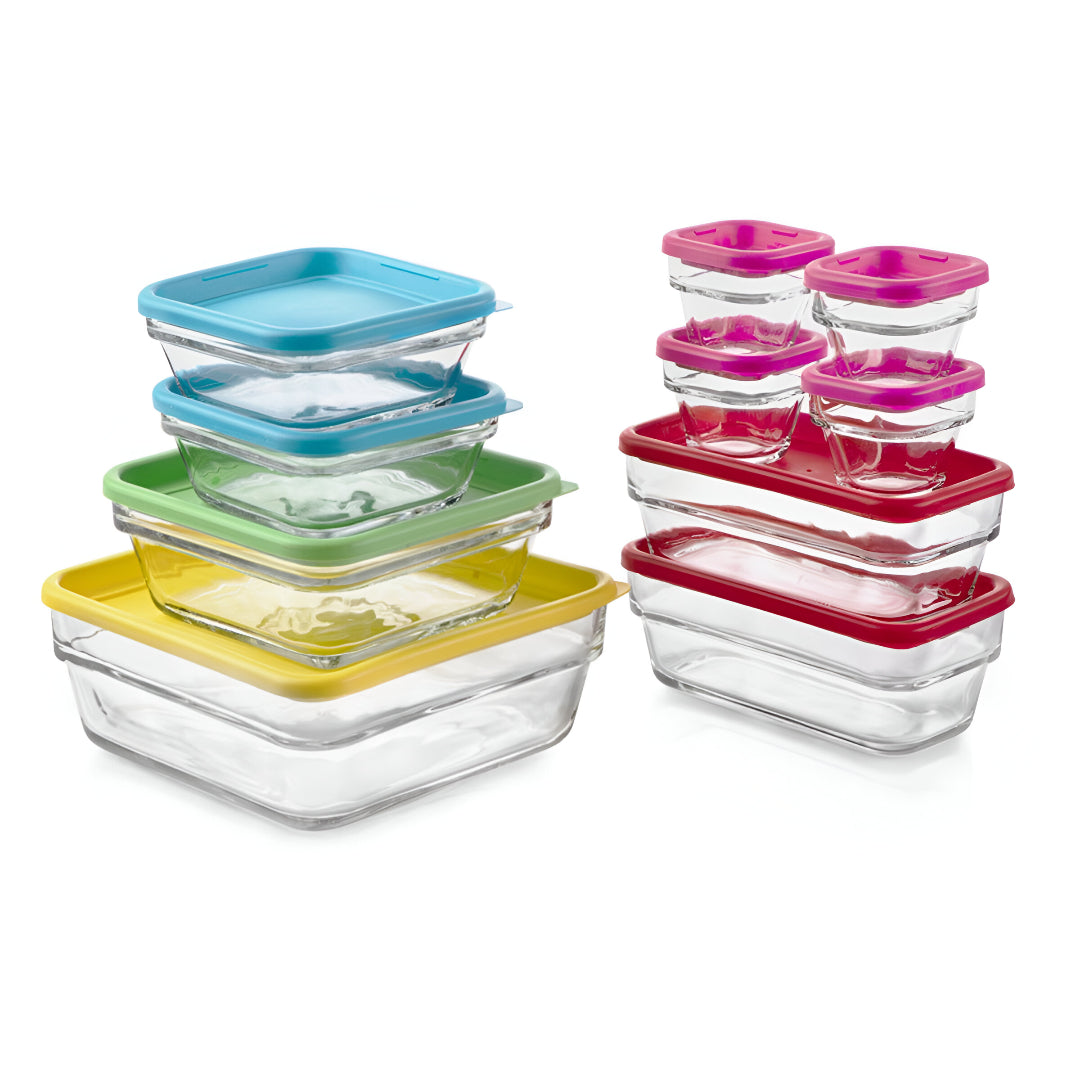 Set De 10 Contenedores De Vidrio Con Tapa