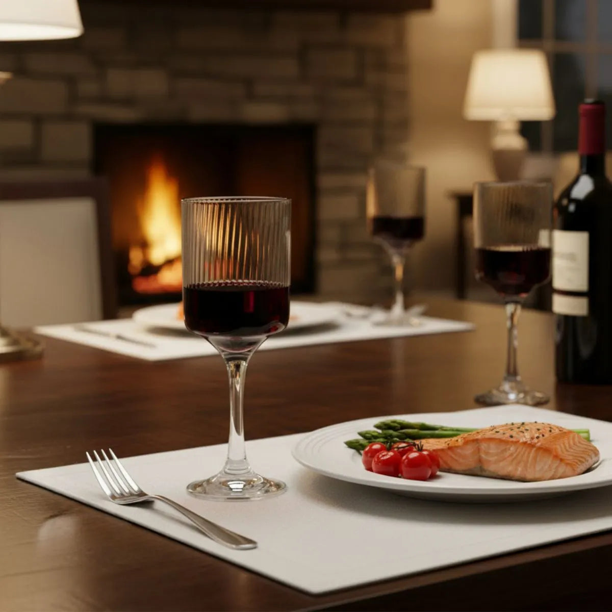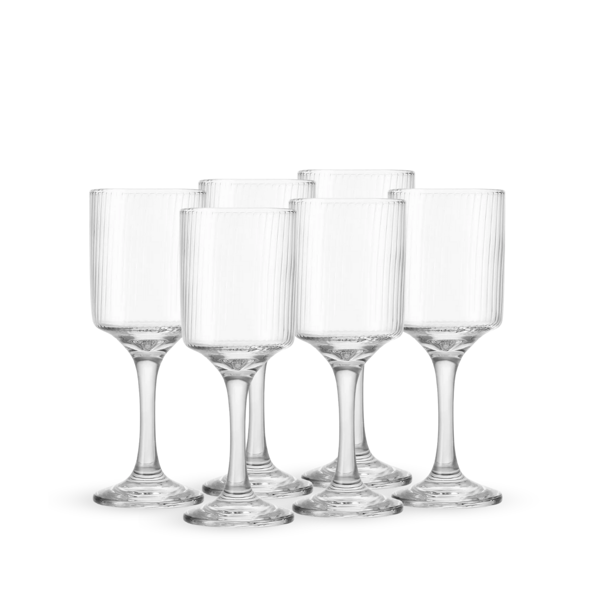 Juego de 6 copas Some Lines en vidrio texturizado con líneas en relieve. Diseño moderno y elegante que realza cualquier mesa, perfectas para vino, gin y cócteles. Disponibles en varios tamaños para adaptarse a cada bebida y ocasión. Combina estética contemporánea con funcionalidad, ideal para el hogar o como regalo premium.