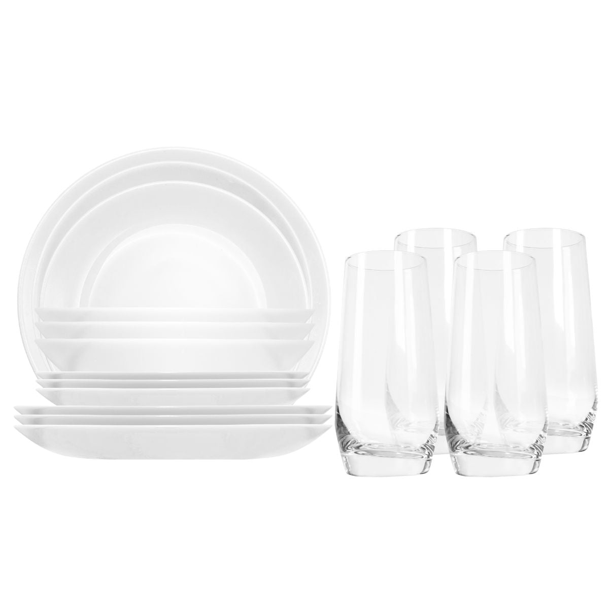 ¡No busques más! Nuestra vajilla de 16 piezas es la combinación perfecta de calidad, resistencia y elegancia. Esta moderna vajilla de opal incluye vasos de vidrio y pertenece a la línea Diwali. ¡Haz de tus comidas momentos inolvidables!