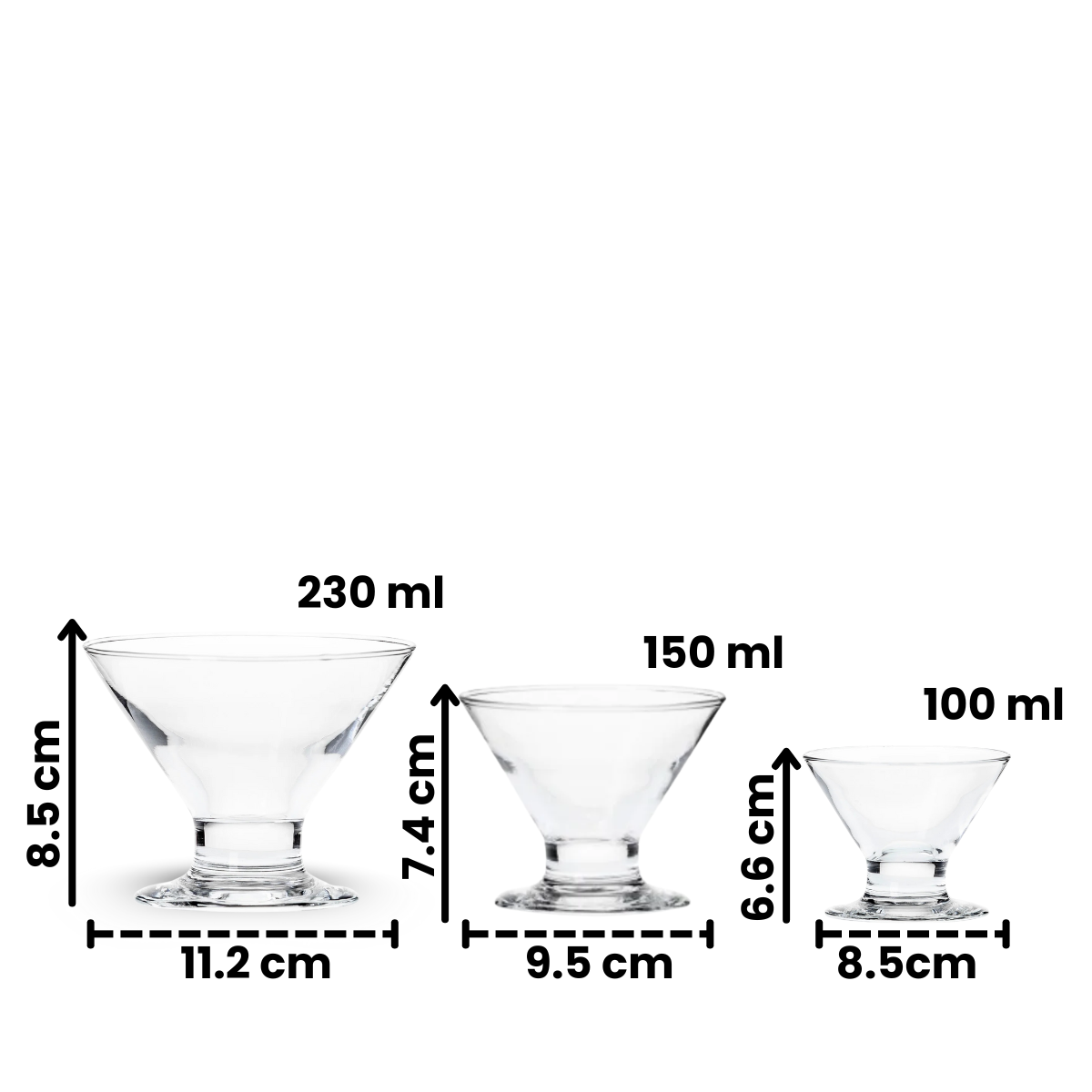Variedad de copas en diferentes tamaños para desde pequeñas para porciones individuales hasta grandes para presentaciones compartidas.